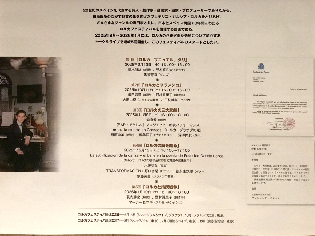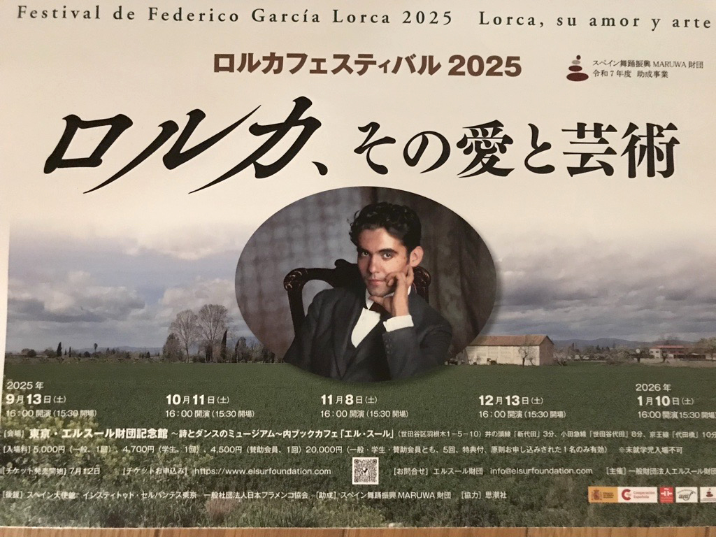 第1回「ロルカ、ブニュエル、ダリ」 第2回「ロルカとフラメンコ」*満席となりました 第3回「ロルカの三大悲劇」 第4回「ロルカの詩を踊る」 第5回「ロルカと市民戦争」 |